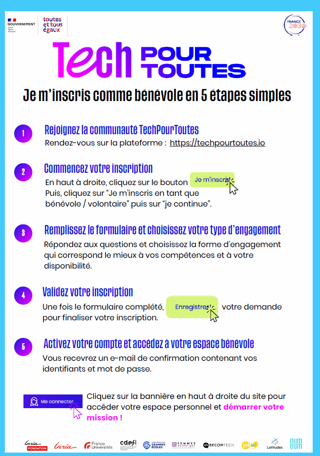 Parce que nos filières et métiers du numérique doivent se conjuguer au féminin, Inria+alumni choisit de soutenir le programme TechPourToutes et compte sur ses membres Inria et alumni pour accompagner la démarche !
